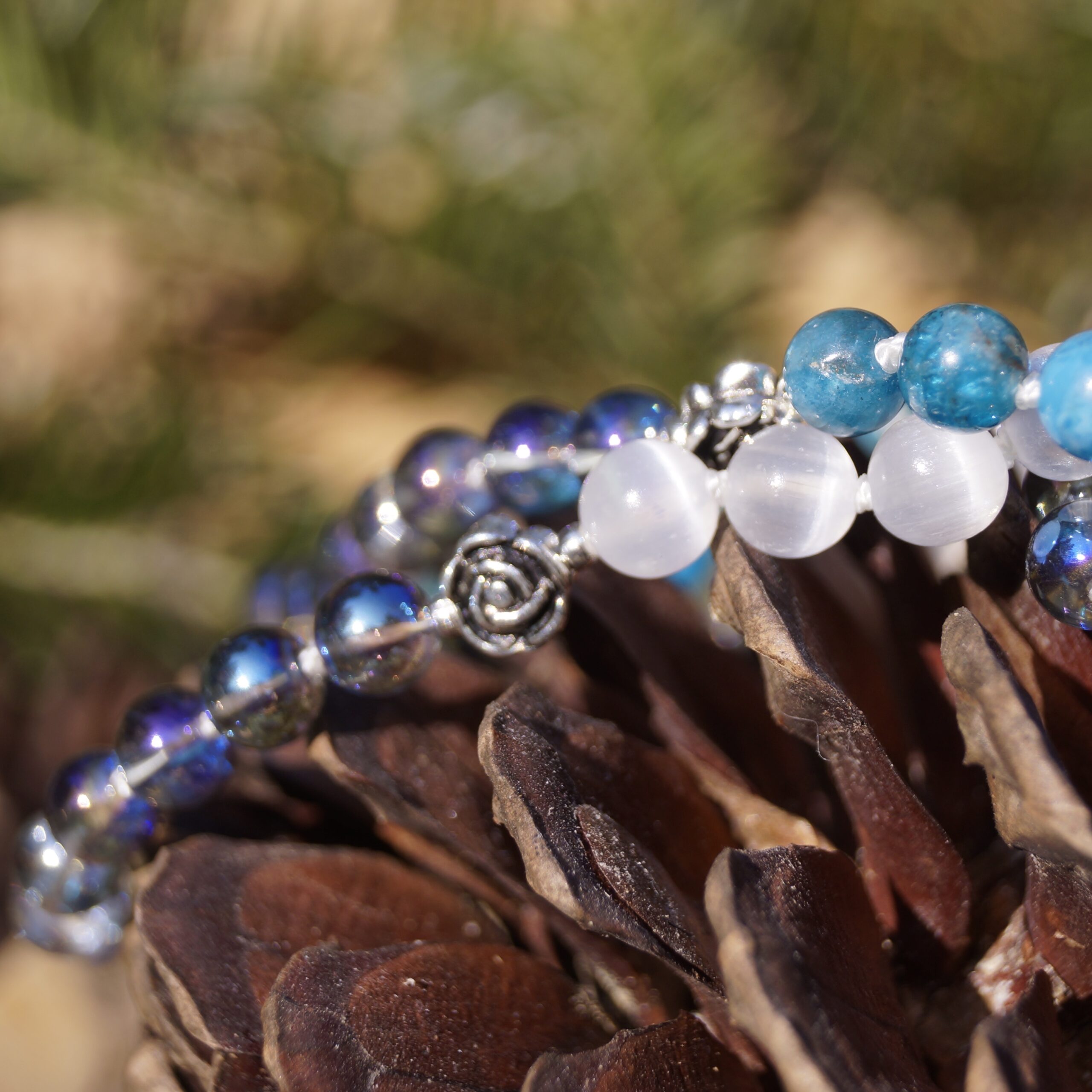 Nos malas sont composรฉs de diffรฉrents types de pierres naturelles semi-prรฉcieuses ร lโรฉnergie et aux vertus propres ร chacune et ร celle de l’รฉlixir associรฉ. ย Ils sont tous assemblรฉs artisanalement en France, dans la rรฉgion de l’Alsace.