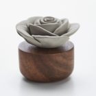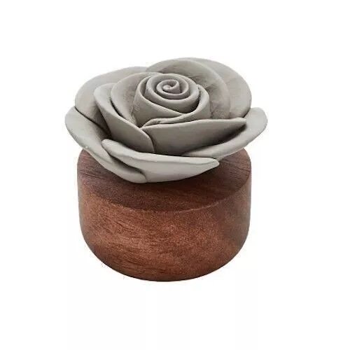 Perfume and elixirs diffuser. Porcelain flower, Acacia wood base. Handcrafted product made in the workshop, with natural materials.