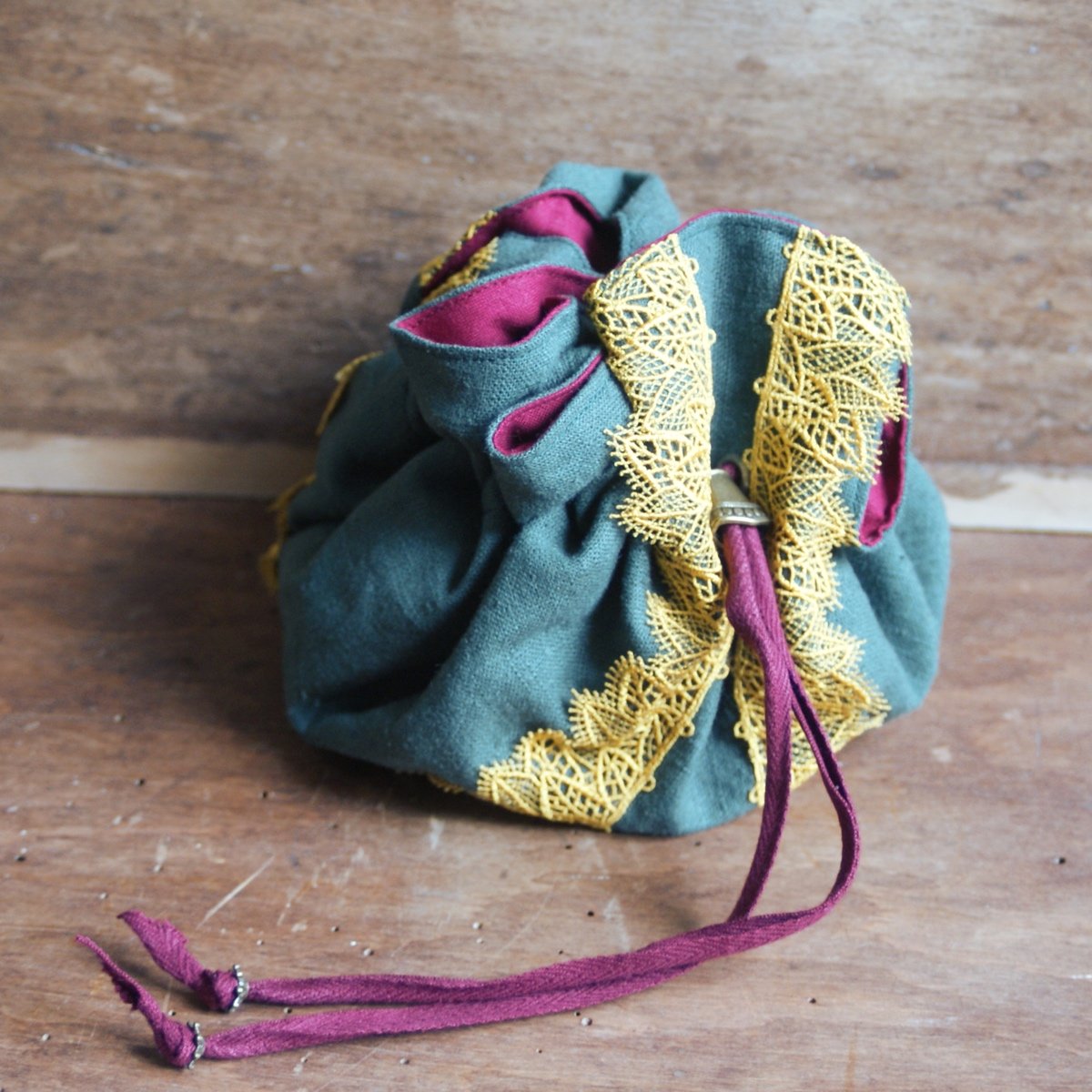 This makes it a delicate pouch, beautifully pleated when closed, and very useful for transporting your precious items with you, while protecting them.